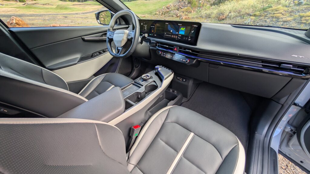 Scaunele sunt printre cele mai bune din segment – susținere laterală bună, reglaje multiple și un design al tetierelor cu reglaj atât orizontal, cât și vertical, nu doar prin pivotare. Totuși, un jurnalist de 1,98 m înălțime a observat că ar mai putea folosi câțiva centimetri de spațiu la cap – atât față, cât și spate. Pasagerii de pe bancheta spate au acces la încălzire, dar și ei vor simți limitele înălțimii interioare dacă depășesc media. Portbagajul oferă 24,4 picioare cubice de spațiu, însă frunk-ul (portbagajul frontal) este extrem de mic – suficient doar pentru câteva accesorii, cabluri de încărcare sau câteva scule.