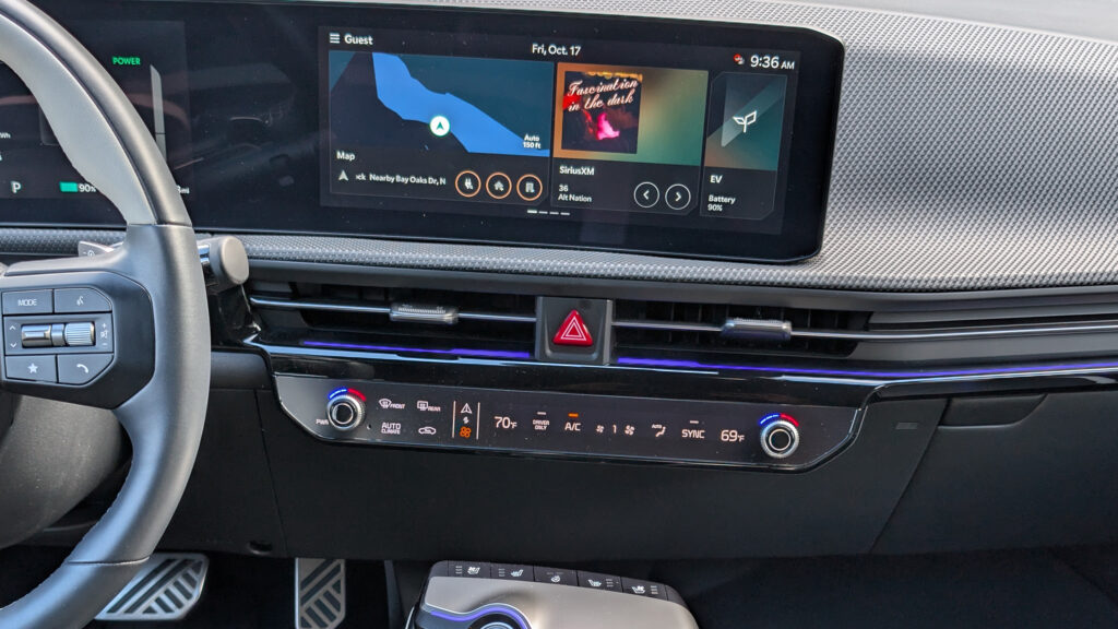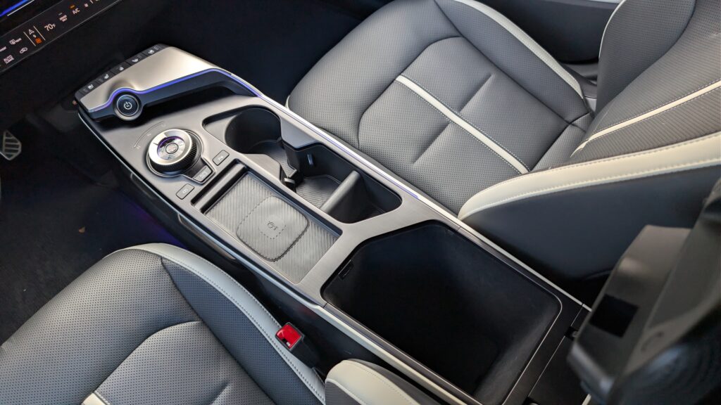 Există însă și un minus notabil: sistemul dual de control HVAC/Media, care folosește un buton haptic pentru a comuta între cele două funcții, rămâne o sursă de iritare. Există clar spațiu fizic pentru o a doua linie de butoane care ar elimina nevoia acestui comutator, dar Kia nu a ales această soluție.